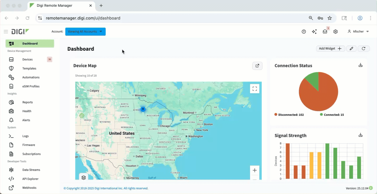 On the Notification Lists tab of the Alerts page in Digi Remote Manager, you can see a list of notifications events for both configured and system alerts. Each entry in this list represents a single notification configuration - that is, rules that specify how, when, and to whom a notification is communicated when an alert is triggered.