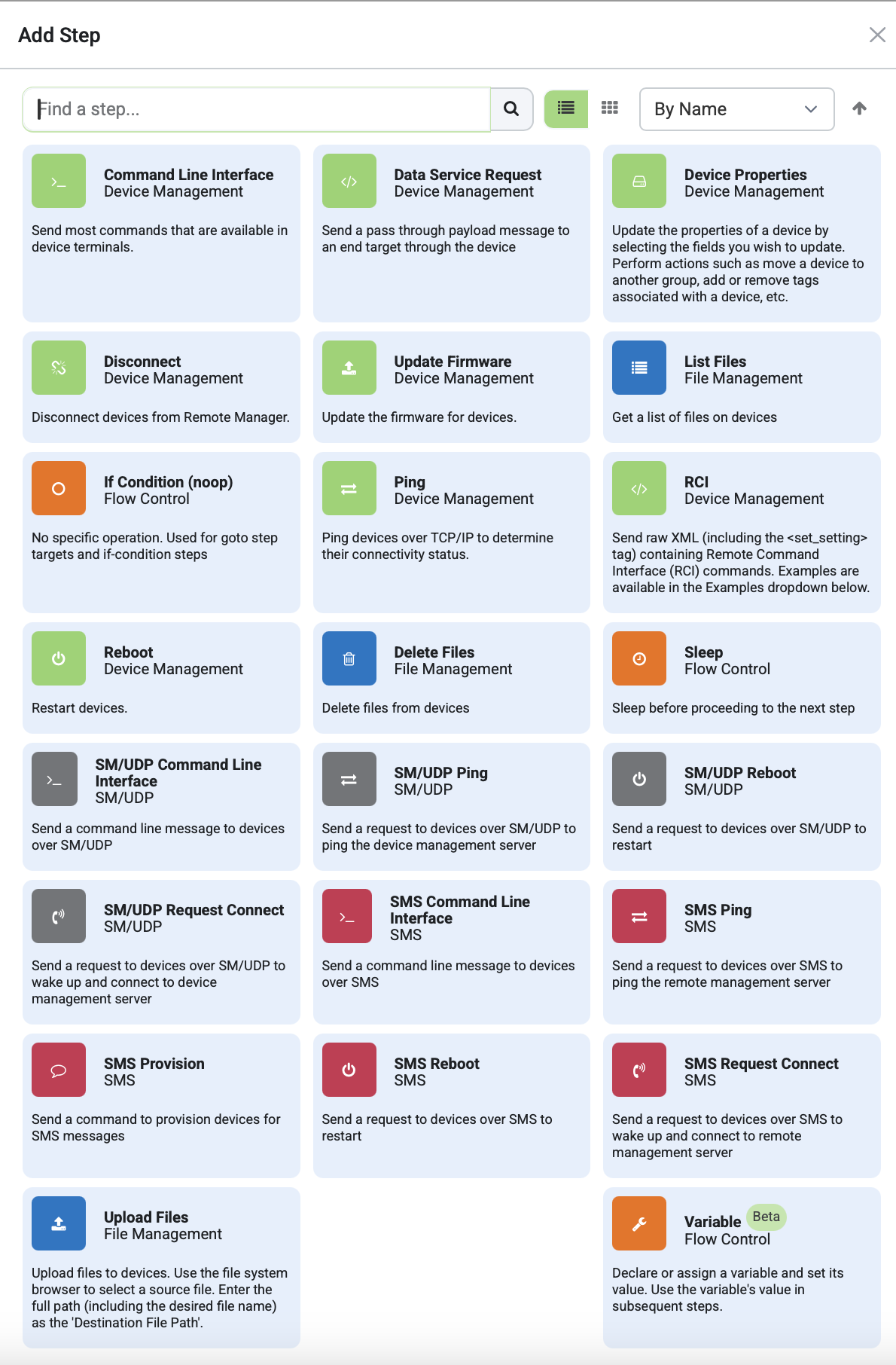 This procedure guides you through creating a step and adding the corresponding commands to automate cellular modem firmware updates. You can add this automation step to a new or existing automation and include additional steps for other actions as needed. However, be mindful that adding a step(s) to an automation impacts the overall workflow and may affect how other steps in the automation are executed.
