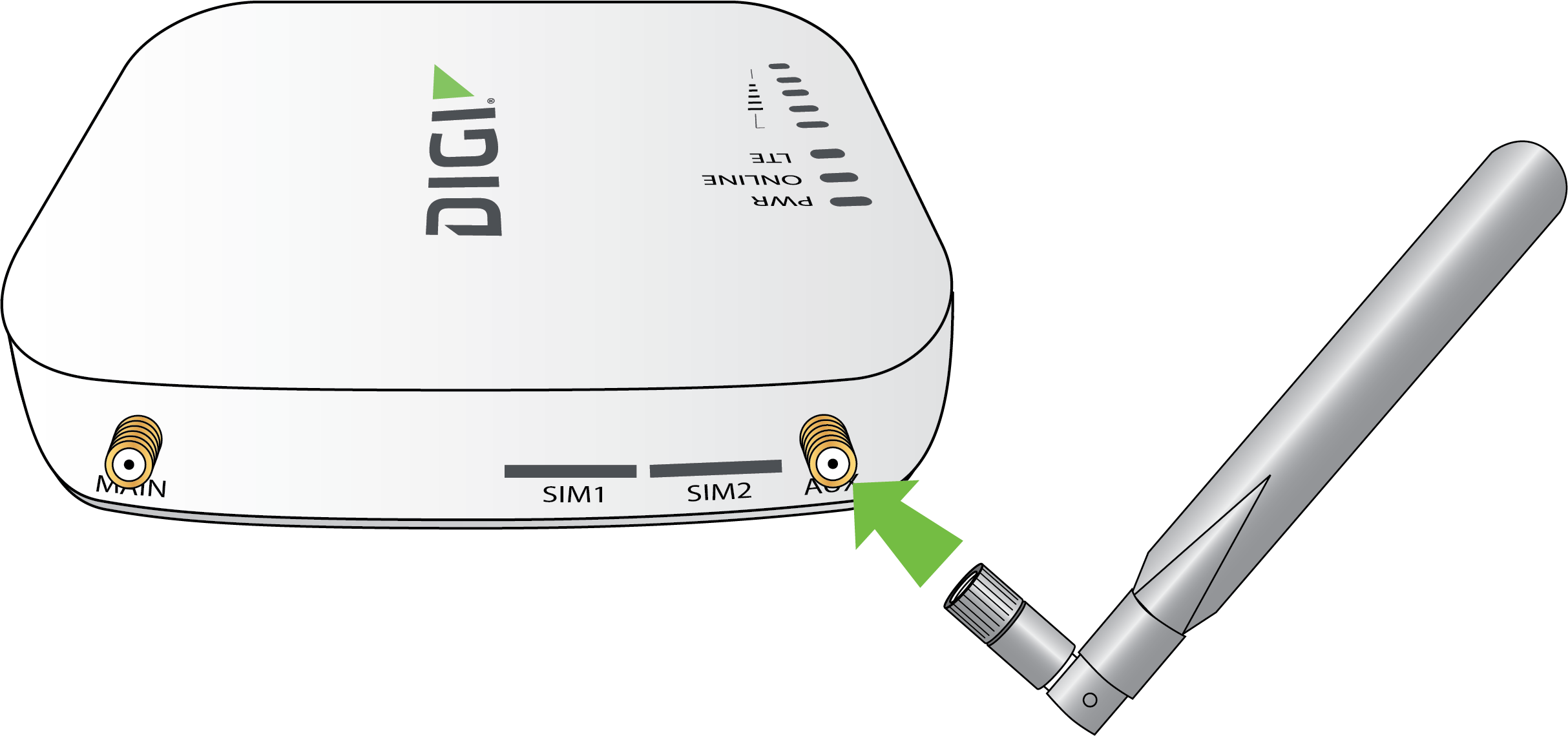 Attach and securely tighten each antenna to the MAIN and AUX connectors on the router.