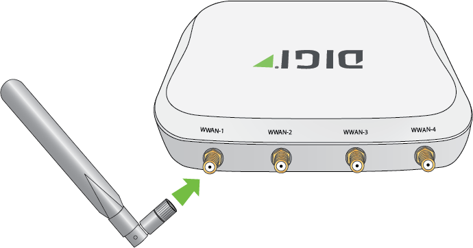 Attach and securely tighten each antenna to the WWAN-1, WWAN-2, WWAN-3, and WWAN-4 connectors on the router.