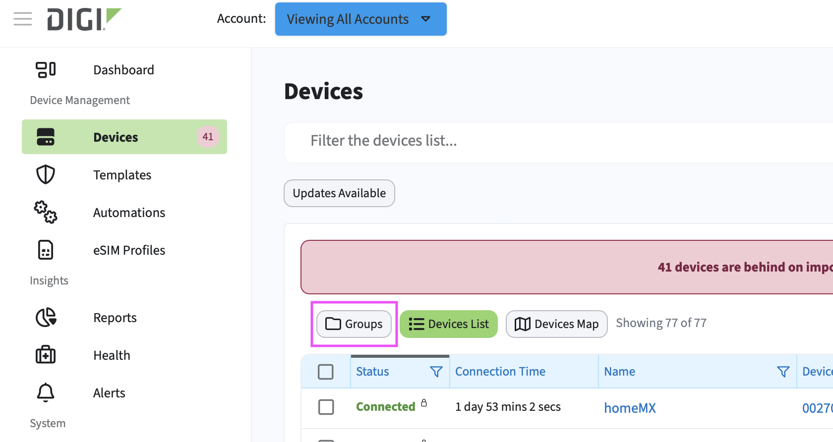 Log in to Digi Remote Manager. - In the left navigation menu, click Devices.