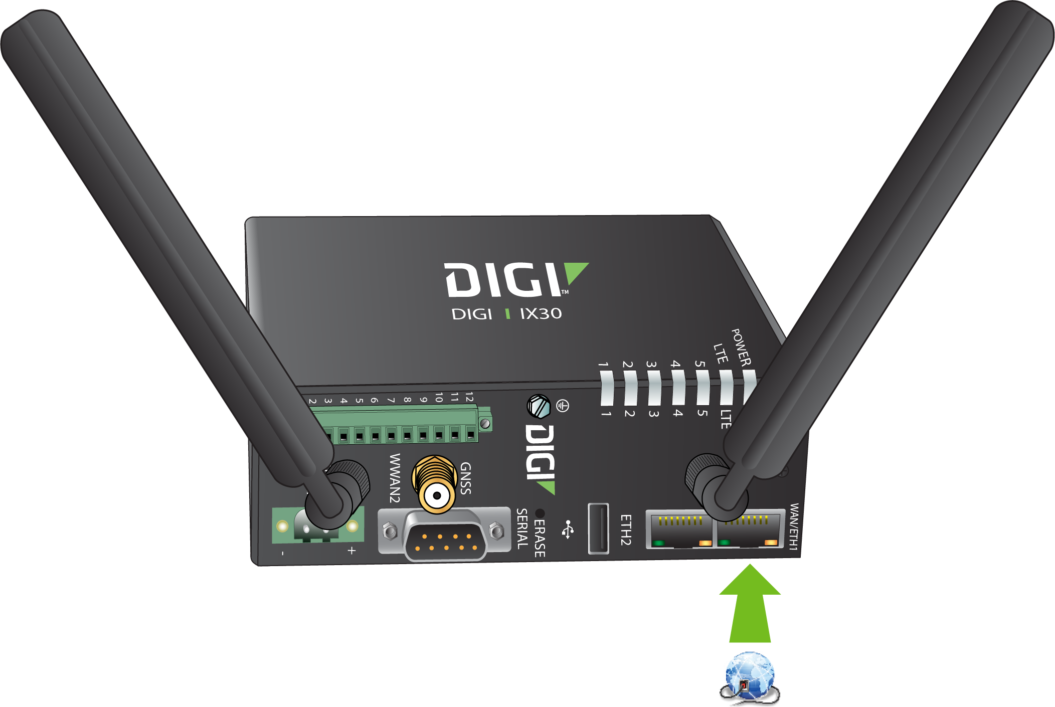 Using an Ethernet cable, connect the IX30's WAN/ETH1 port to the internet, such as a home internet router or LAN Ethernet port in an office environment.