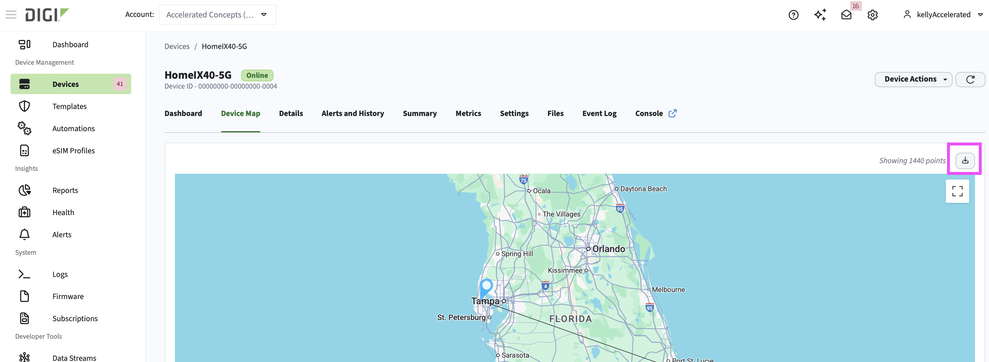 A new download button has been added to the Device Map page, allowing you to export a CSV of your device’s location history.