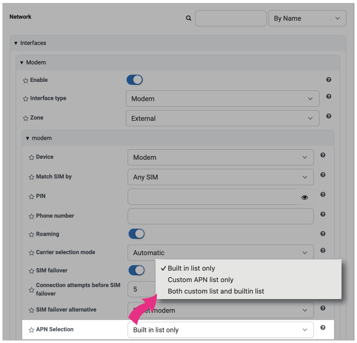 Configure cellular modem APNs