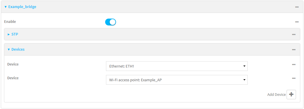 2. Create a new bridge that consists of the new access point and the ETH1 device.