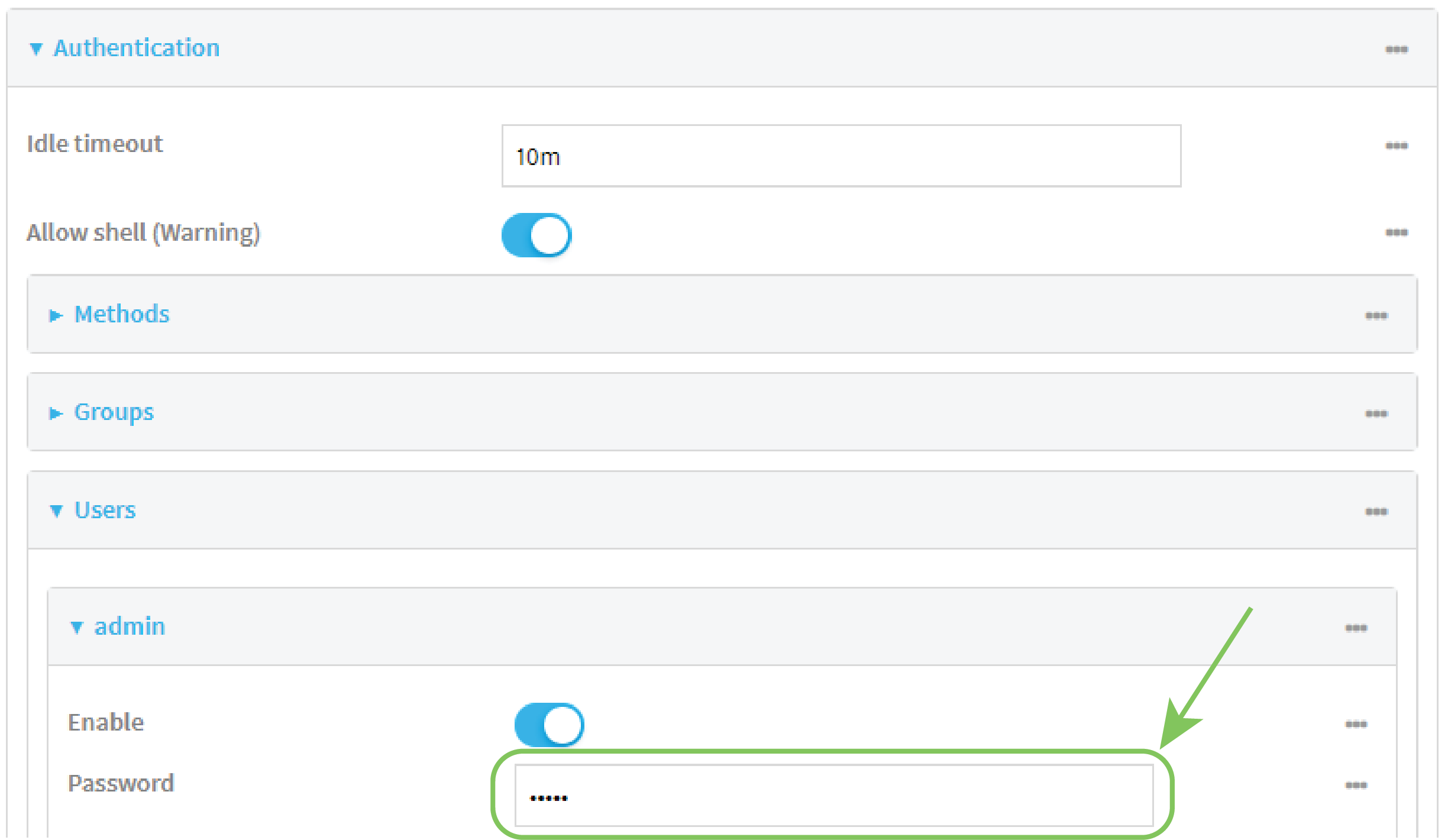 3. Click Authentication > Users > admin.