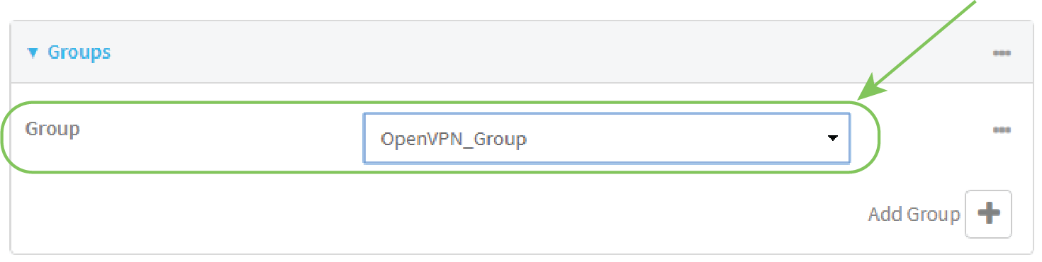If username and password authentication is used for the OpenVPN server, you must create an OpenVPN authentication group and user.