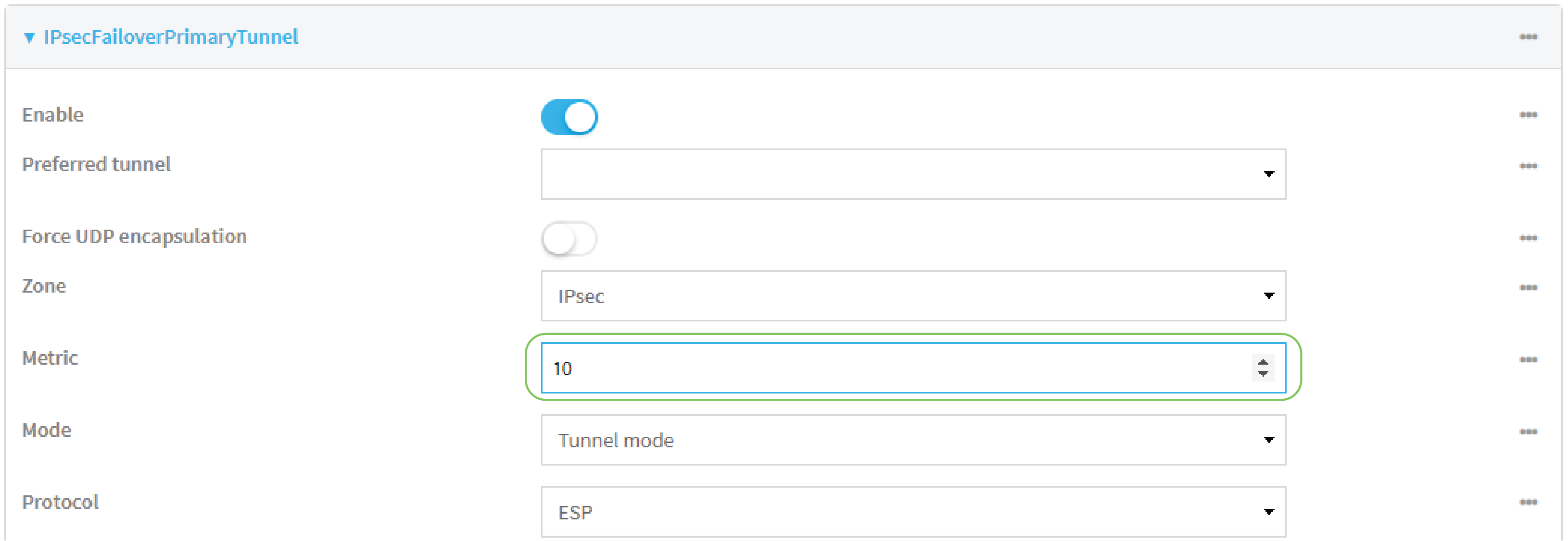 You can configure the TX64 device to fail over from a primary IPsec tunnel to a backup tunnel: