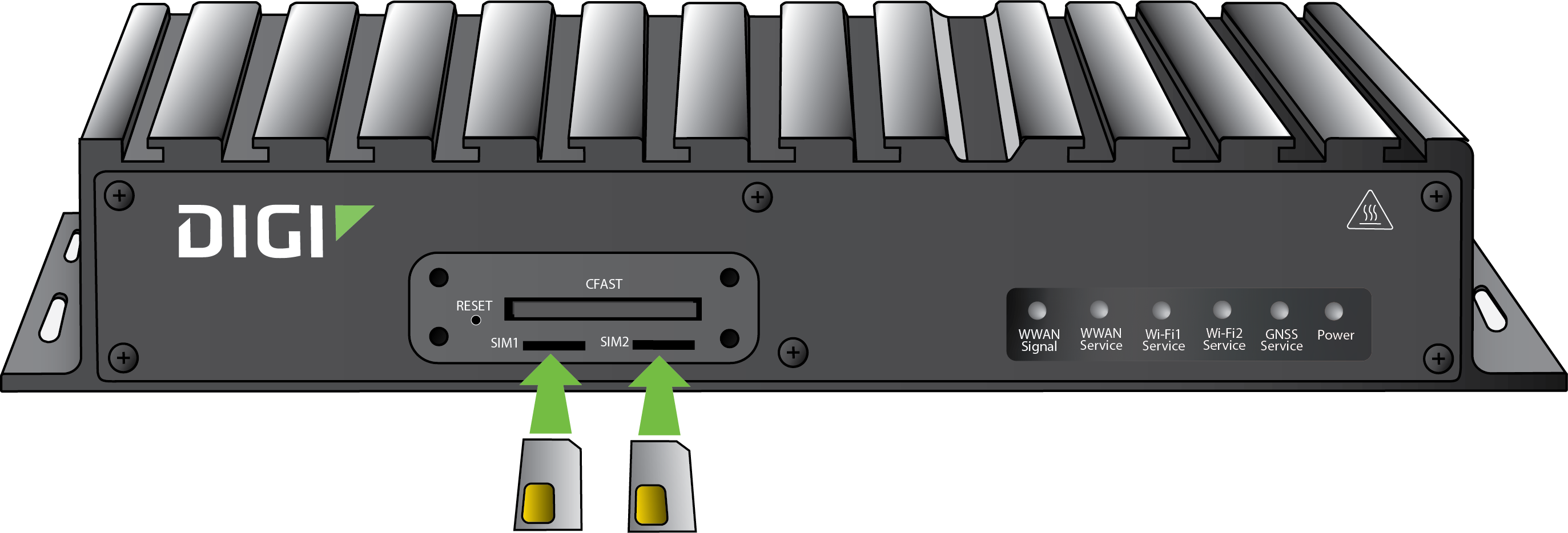 Every Digi router has a product label on the bottom, which has information unique to that device, including product model, part number, QR code, password, MAC address and serial number. There is an identical sticker included in the router box. You can refer to the information on this extra sticker if you do not have access to the hardware. Using the extra product label sticker is the most efficient way to register routers in Digi Remote Manager.